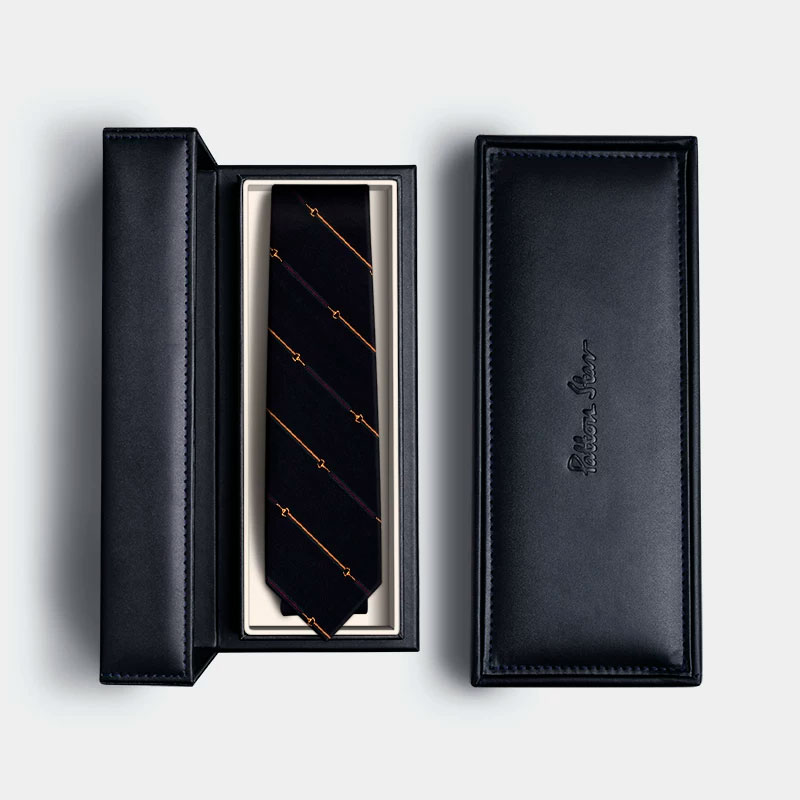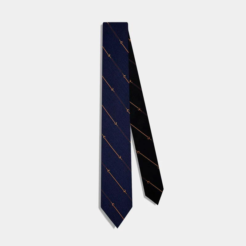 蓝黑双面条纹真丝领带